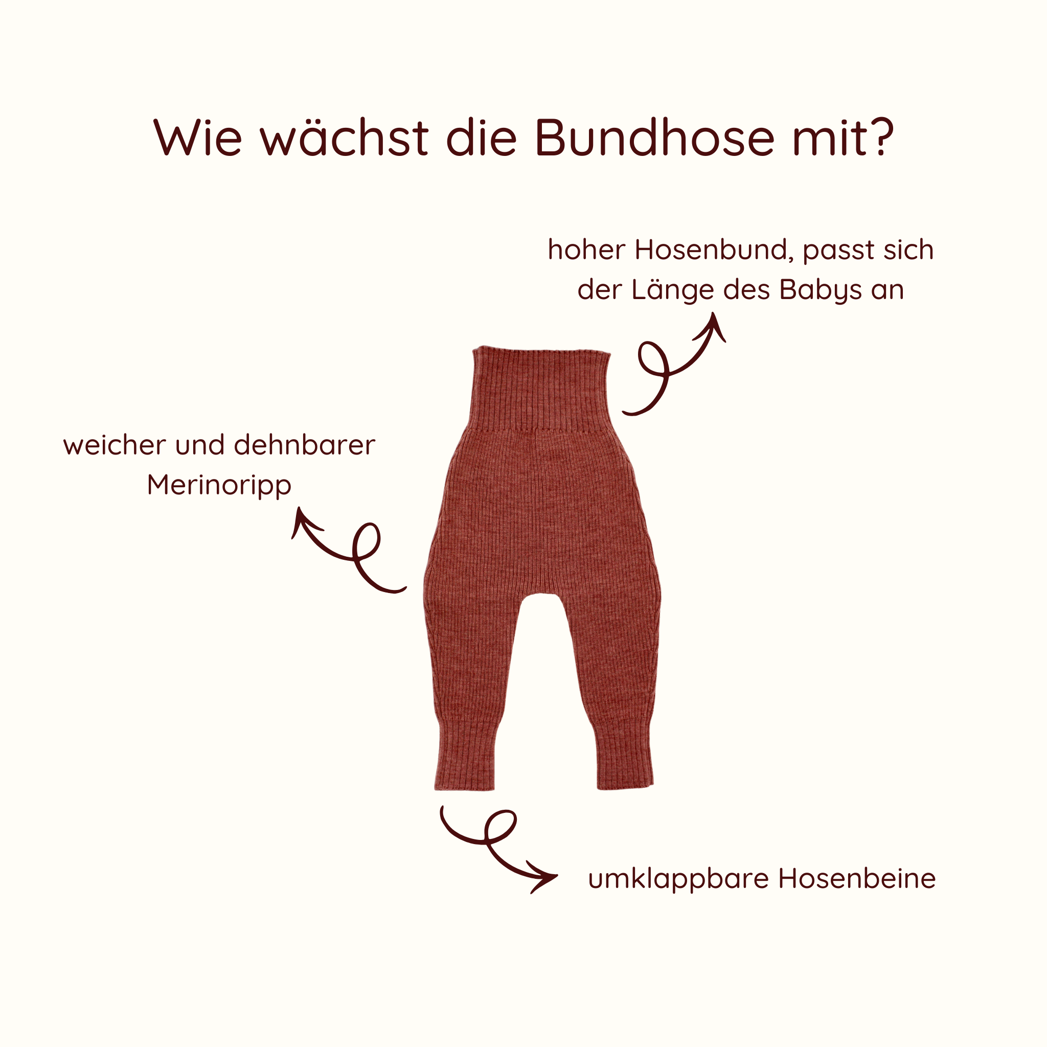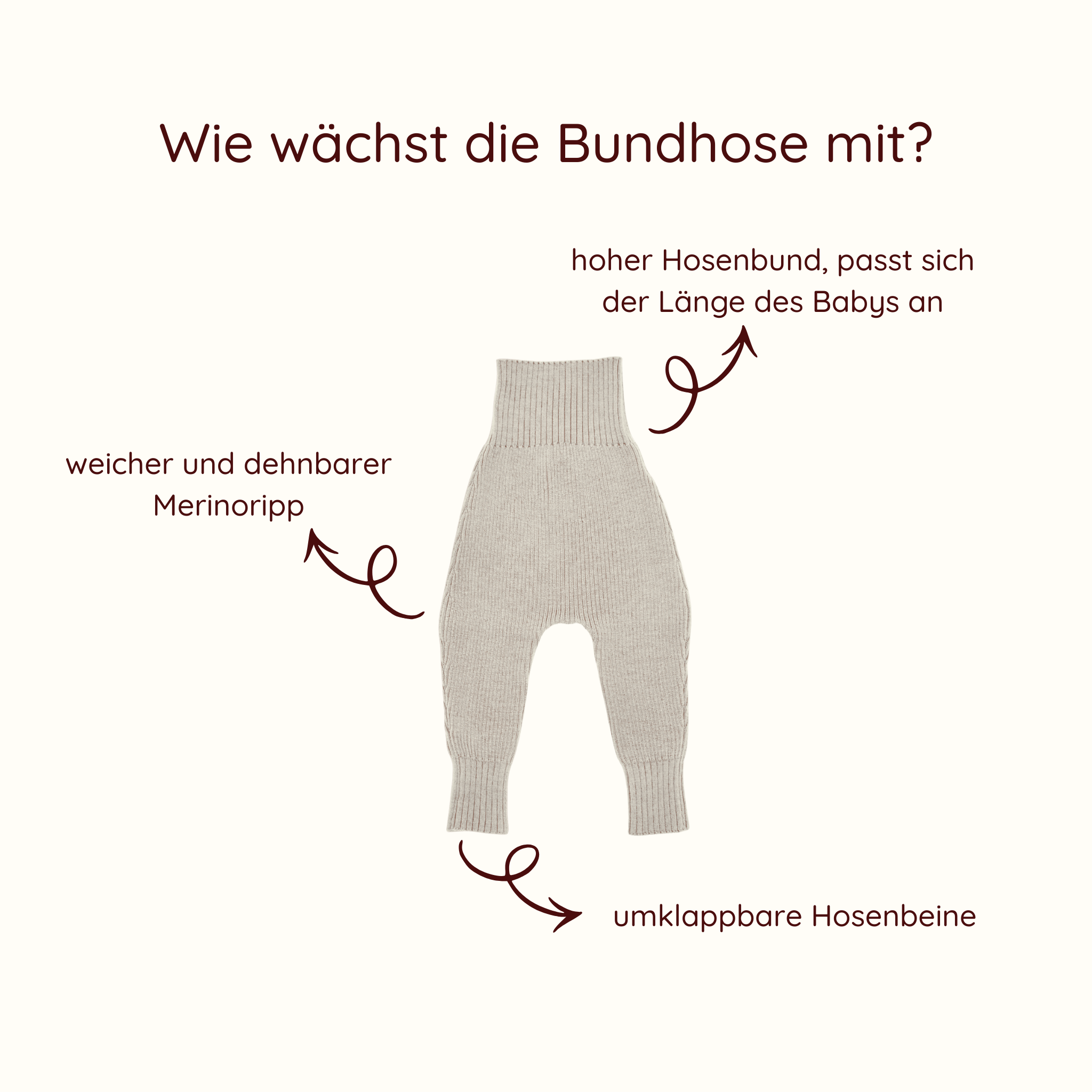 Für unsere Strickprodukte haben wir bewusst Merinowolle gewählt, weil keine andere Faser so viele natürliche Superkräfte hat. Diese sorgen dafür, dass sich dein Baby rundum wohlfühlt und schenken ihm das Vertrauen und die Sicherheit, die es für einen sanften Start in die ersten Lebensmonate braucht.
